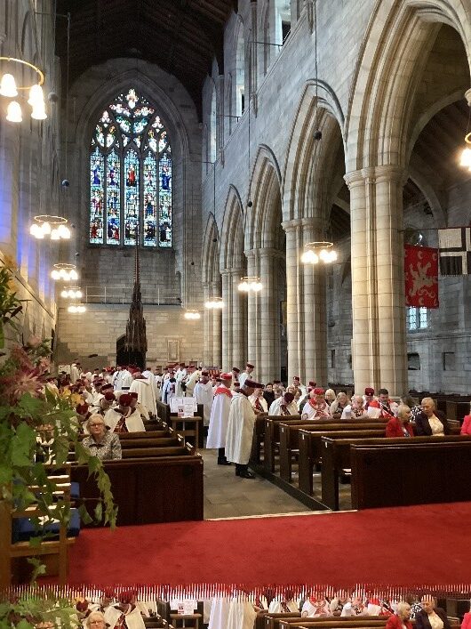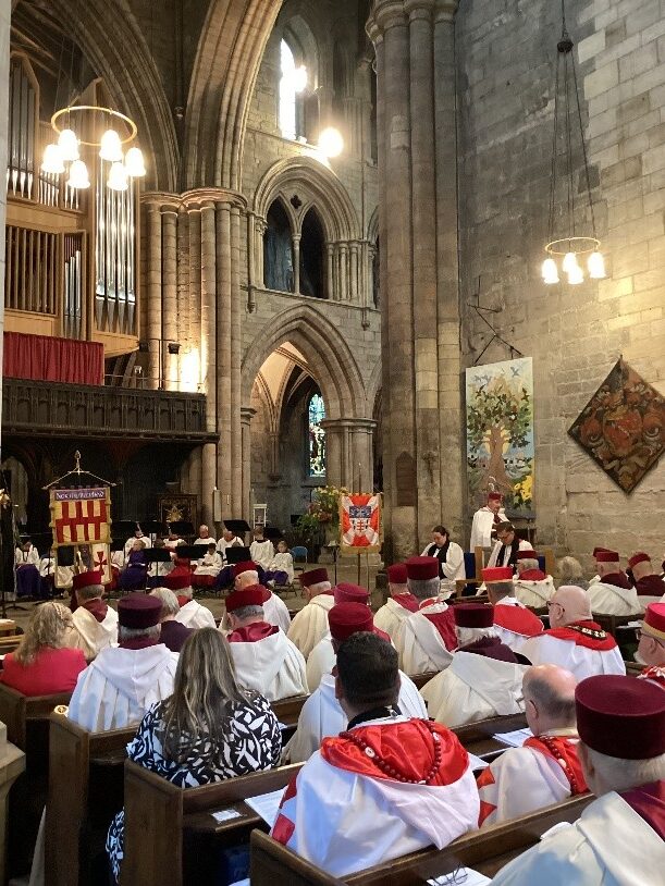 Punkt 11:00 Uhr erklangen die majestätischen Töne der Abteiorgel und kündigten den Beginn des Gottesdienstes an. Der Rektor der Abtei, Reverend David Glover, begrüßte die Versammlung herzlich und wurde vom Provinzprälaten Reverend Leslie Dinning unterstützt. Gemeinsam führten sie durch einen tief bewegenden und inspirierenden Jubiläumsgottesdienst.