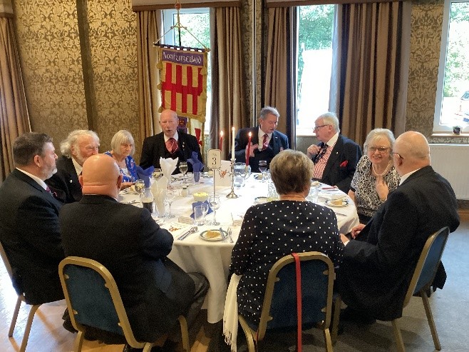 In einem ruhigen, nachdenklichen Moment nach der Zeremonie kommentierte der Großmeister des Großpriorats von Deutschland: „Dies waren wundervolle Tage, und ich freue mich, die sehr warmen Beziehungen zwischen Northumberland und den Ritterbrüdern Deutschlands weiter auszubauen. Ich freue mich sehr, hier zu sein, um E Rt Scotty zu unterstützen, während er die Präzeptorschaft von Chibburn übernimmt, besonders in dem Jahr, in dem es 100 Jahre ununterbrochenen Dienst für das Großpriorat von England und 50 Jahre für Northumberland feiert. Für mich war dies auch ein Treffen, an das ich mich noch viele Jahre erinnern werde, das durch mehrere persönliche Premieren für mich geprägt war.“