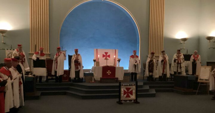 Der Großmeister und VIPs aus Schwesterkonstitutionen wurden begrüßt. Nachdem die Erlaubnis vom Großmeister eingeholt und erteilt worden war, wurde die Zeremonie zur Installation von vier Rittern eingeleitet.